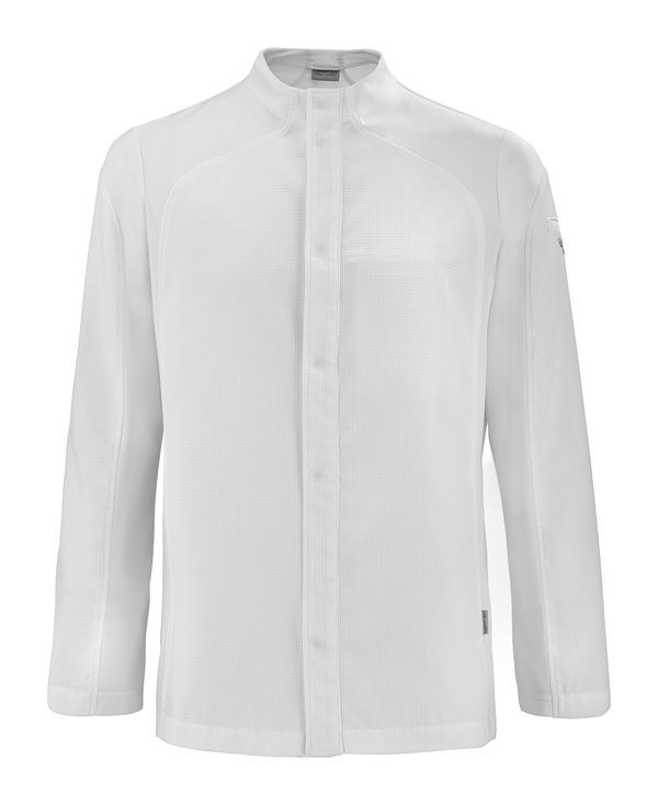 Veste bi-matières avec empiècements ergonomiques. Col montant. Fermeture milieu devant par pressions extra-plates. Plastron, dos et dessus de manches en nid d'abeille. Empiècement épaule, cotés, et dessous de manche en maille. Poche poitrine passepoilé pour stylo/pince à double compartiment. Maille antibactérienne. Matières extra-légère et ergonomique.