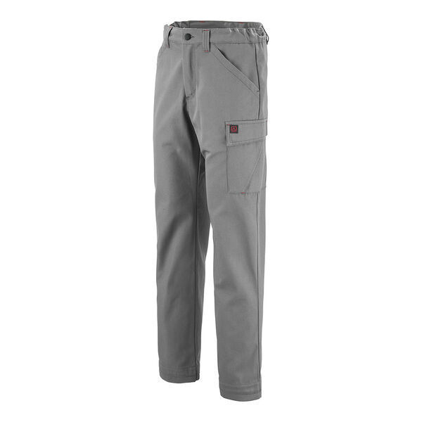 Pantalon, ceinture droite avec passants, élastiquée de côtés et fermée par bouton. Braguette zippée. 2 poches italiennes. Panneau d'aisance à l'entrejambe. Poche cuisse gauche avec soufflet, sous rabat fermé par Velcros® cachés. Poche revolver plaquées au dos. Poche mètre avec bas volant. Pinces jambe dos. Finition bas de jambes par ourlets. Bas de jambes évolutifs. Mercerie tout plastique.